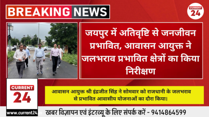 जयपुर, 12 अगस्त: जयपुर में हो रही अतिवृष्टि और जलभराव के कारण आमजन को हो रही परेशानियों के मद्देनजर, आवासन आयुक्त श्री इंद्रजीत सिंह ने सोमवार को राजधानी के जलभराव से प्रभावित आवासीय योजनाओं का दौरा किया। इस दौरे के दौरान उन्होंने मुख्यमंत्री जन आवास योजना प्रताप नगर सेक्टर-26, कुंदनपुरा के गंगा मार्ग स्थित ध्वलगिरि आवास योजना, मानसरोवर, और अन्य इलाकों की आवासीय योजनाओं का निरीक्षण किया।